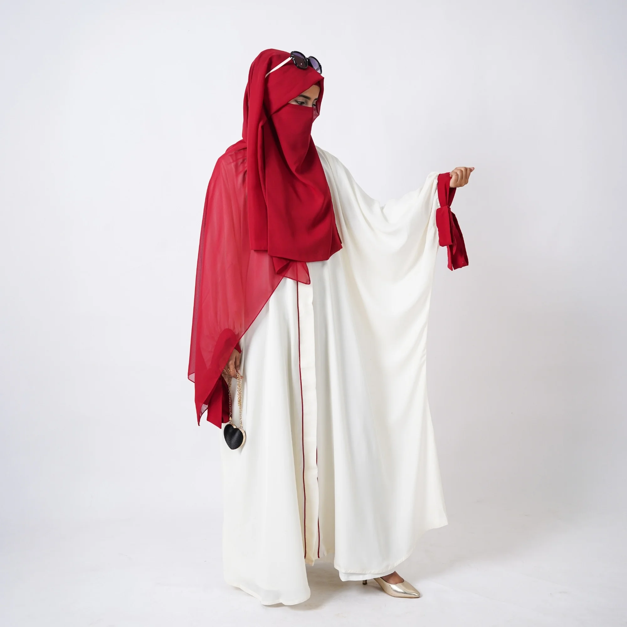 Siraya Off-White Crepe Abaya with Tie Sleeves