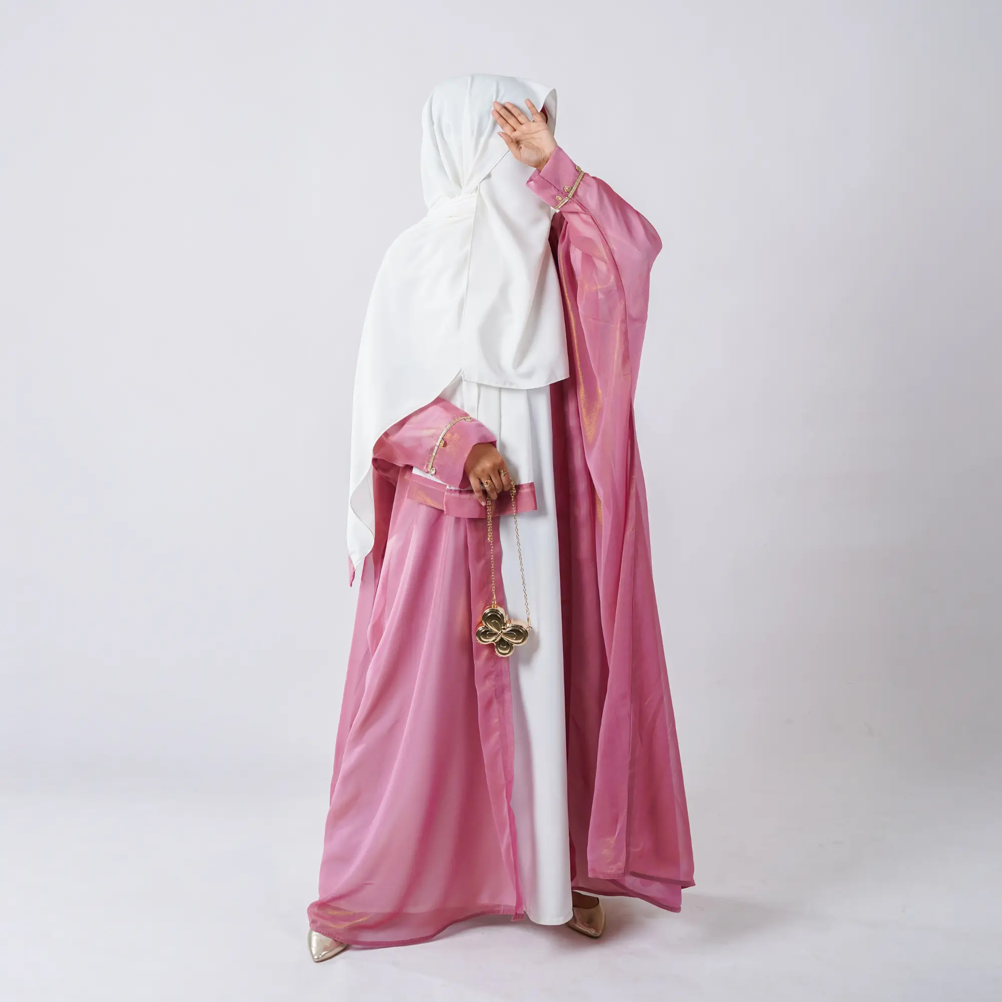 Tags: Farasha Style, Golden Silk, Pink Abaya, Shimmer Abaya, Silk Abaya